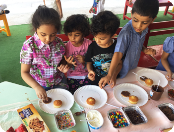 Creativity plays a vital role and is implemented to kids through a variety of ideas like making simple lemonade, celebrating colours day, making kids do beading and a variety of craft works.